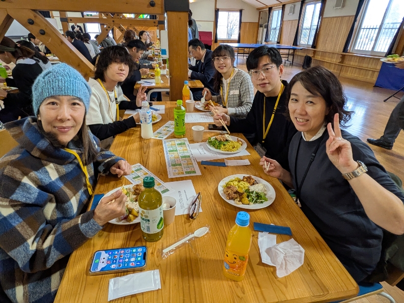 この食事会は、東川日台親善協会が毎年実施しており、留学生・町民約80人が参加しました。町民が留学生に声を掛け、留学生がにこやかに食事を楽しみました。